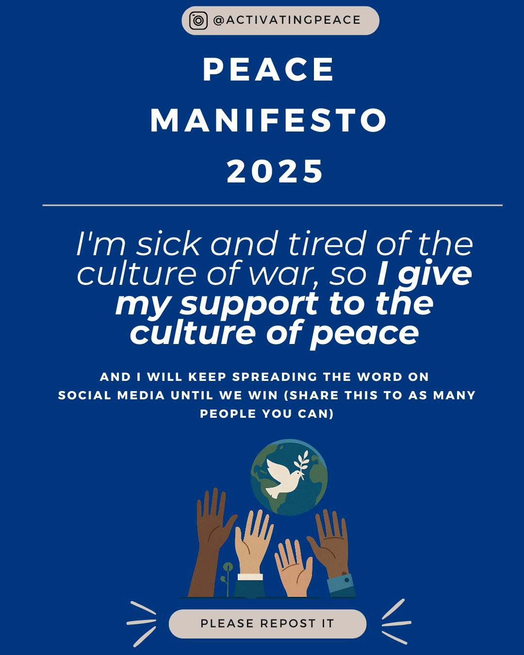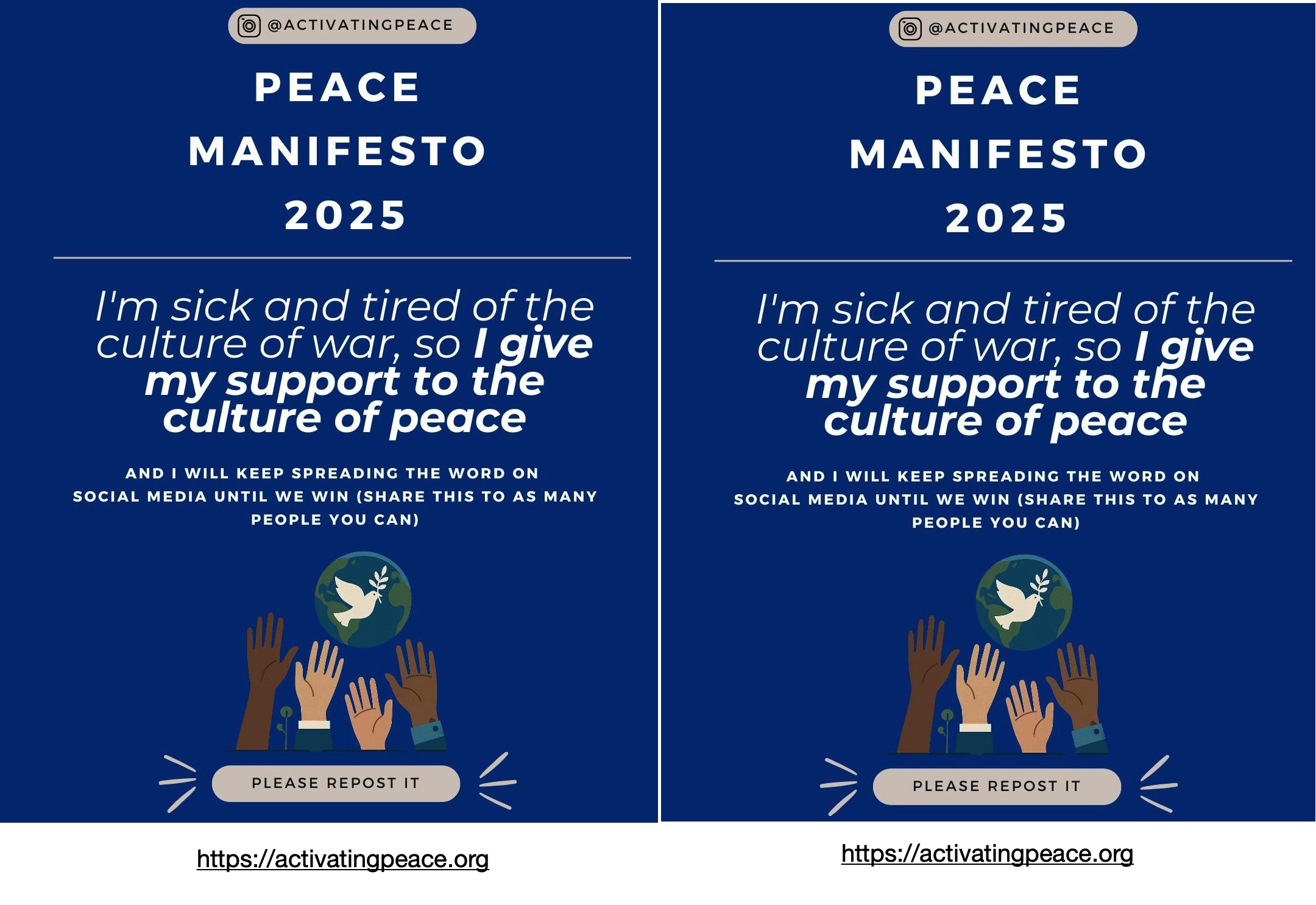 (2) A useful tool for this is to share the following Peace Manifesto on social media: