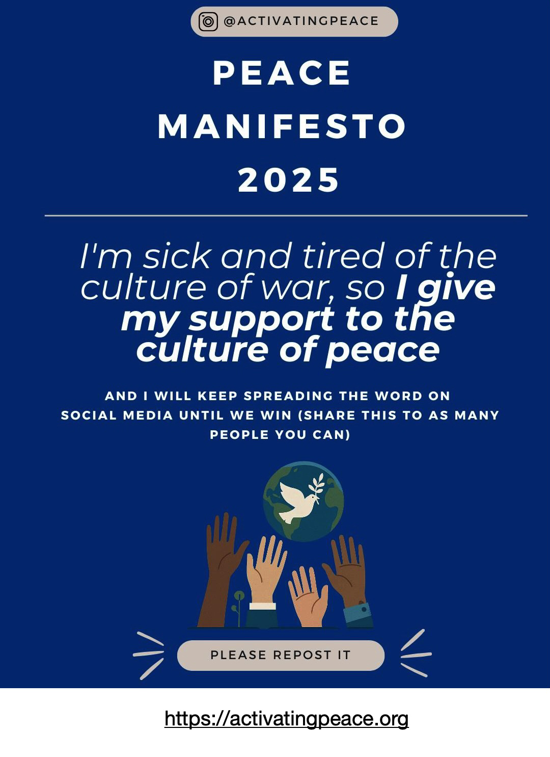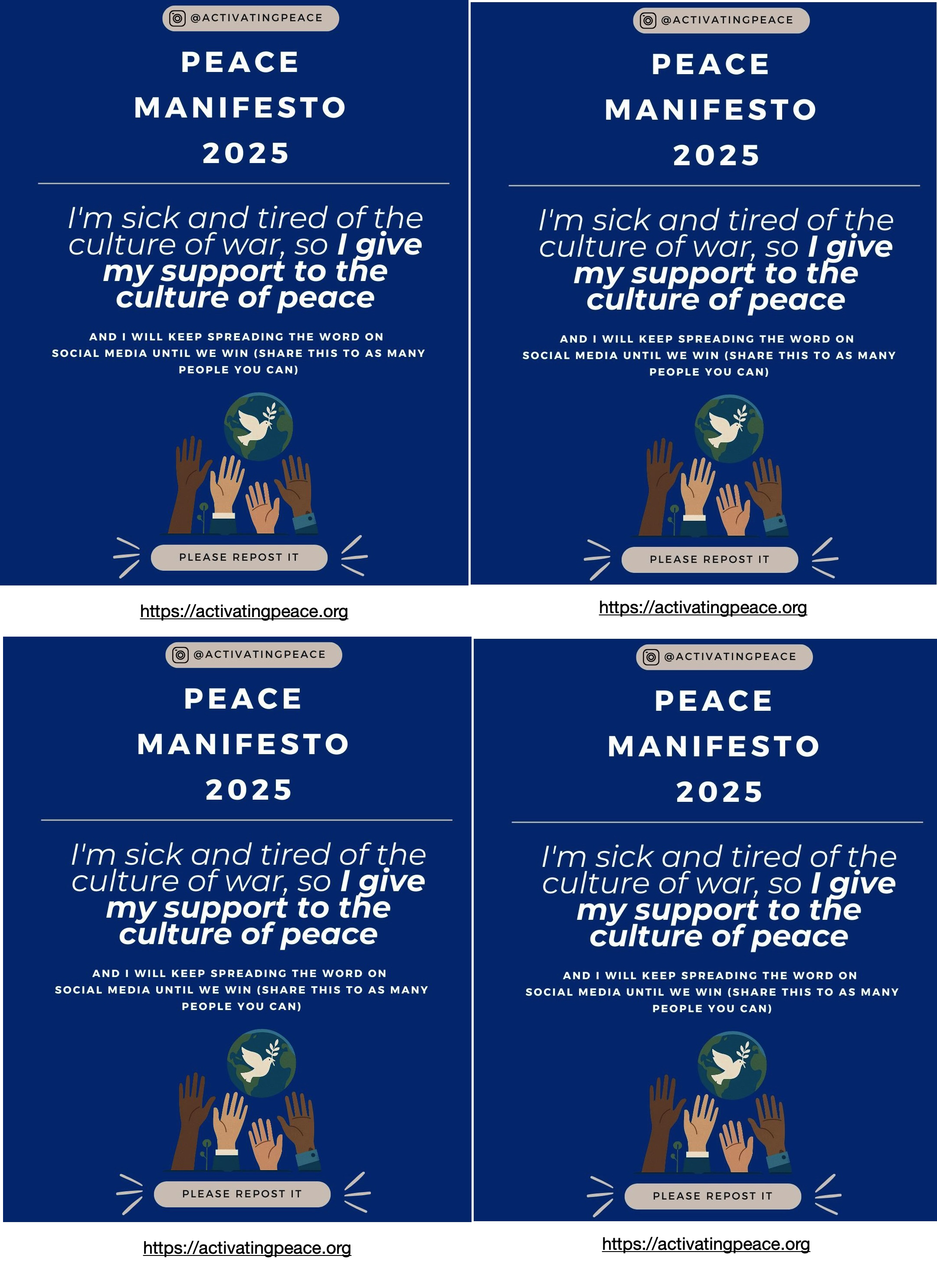 (2) A useful tool for this is to share the following Peace Manifesto on social media: